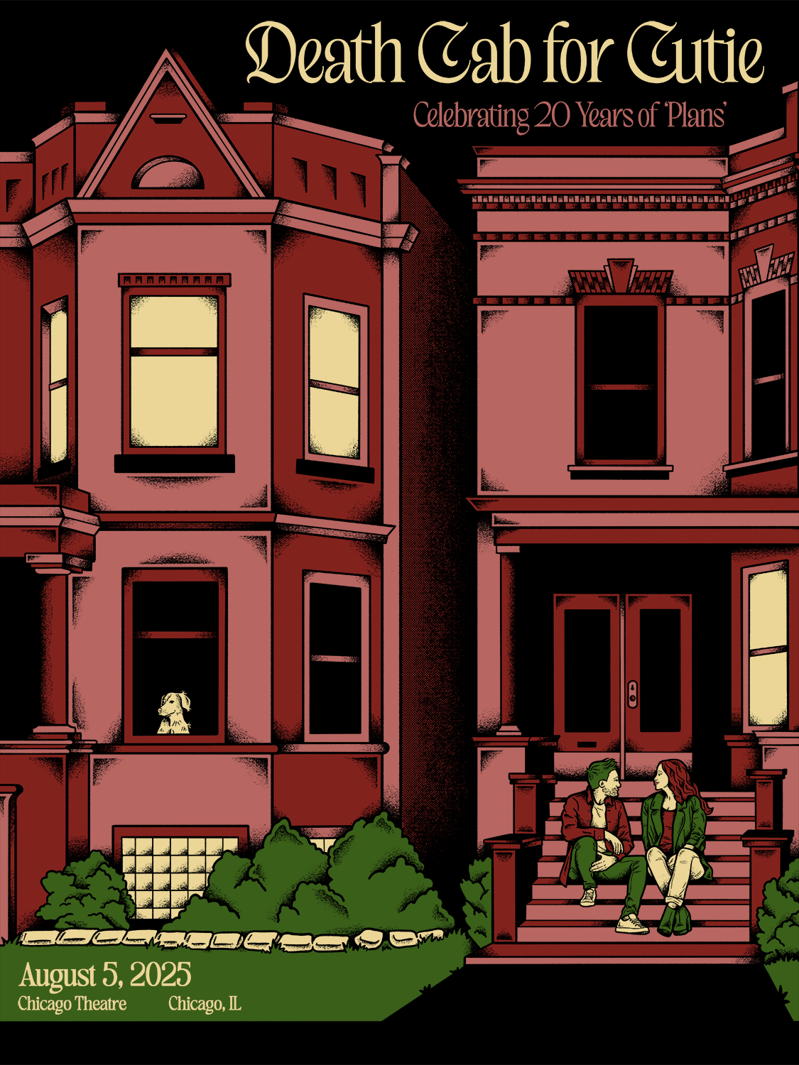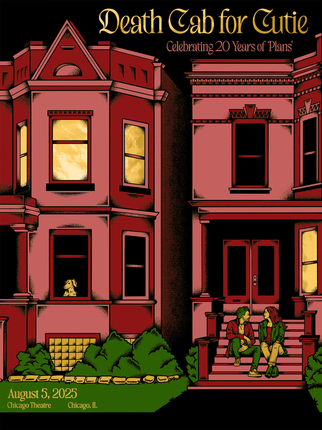 Screen printed poster from night 1 of Death Cab for Cutie at the Chicago Theatre, IL. August 5, 2025.