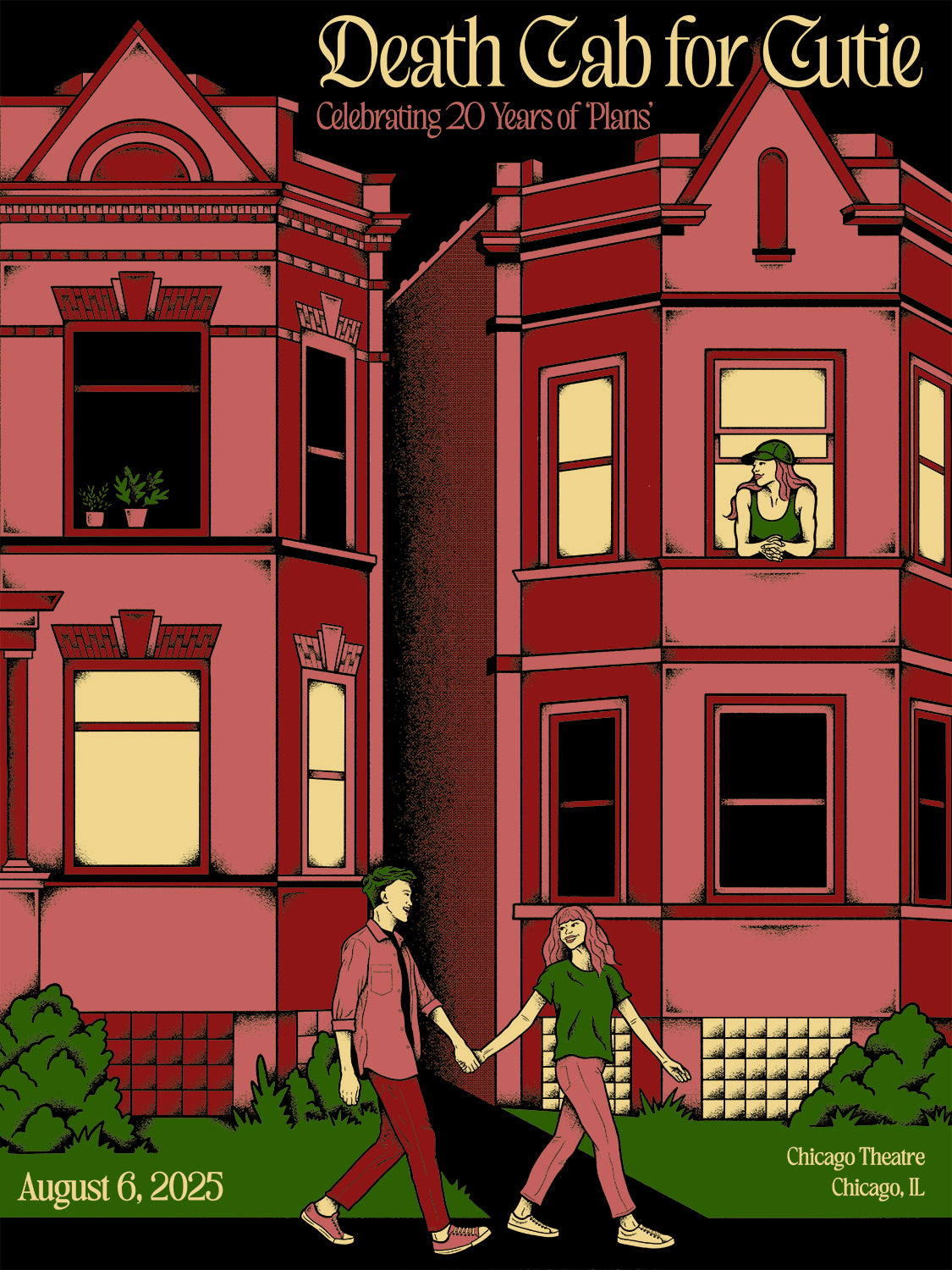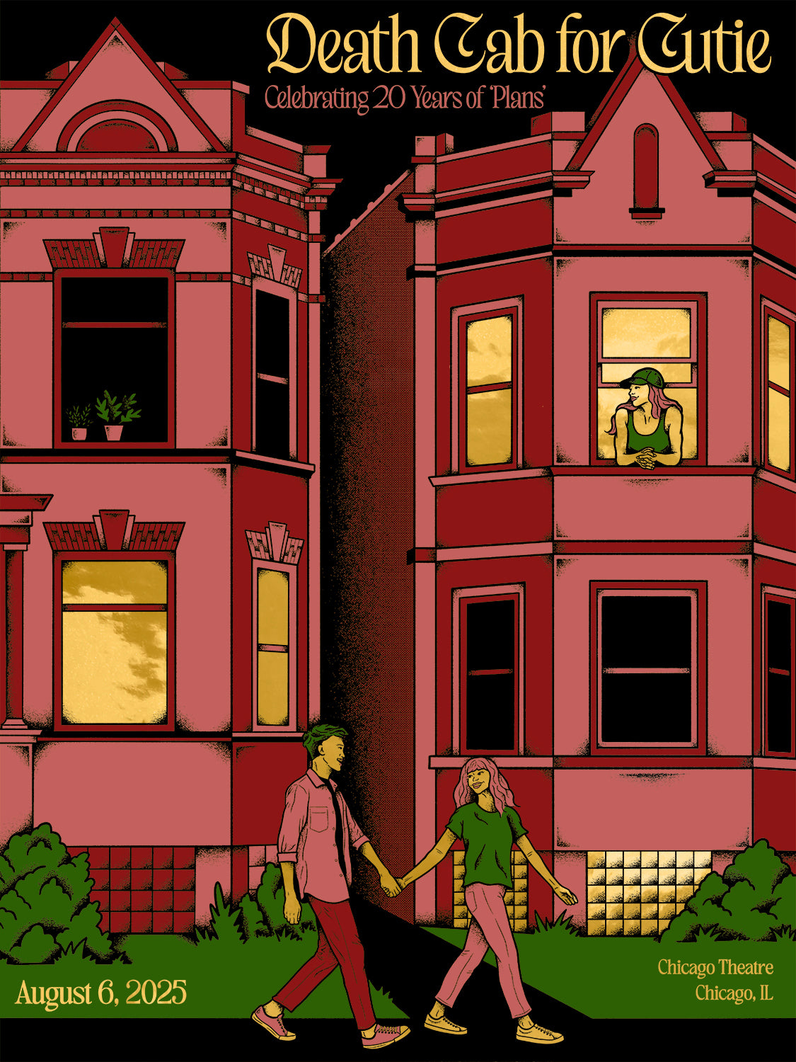 Screen printed poster from night 2 of Death Cab for Cutie at the Chicago Theatre, IL. August 6, 2025.